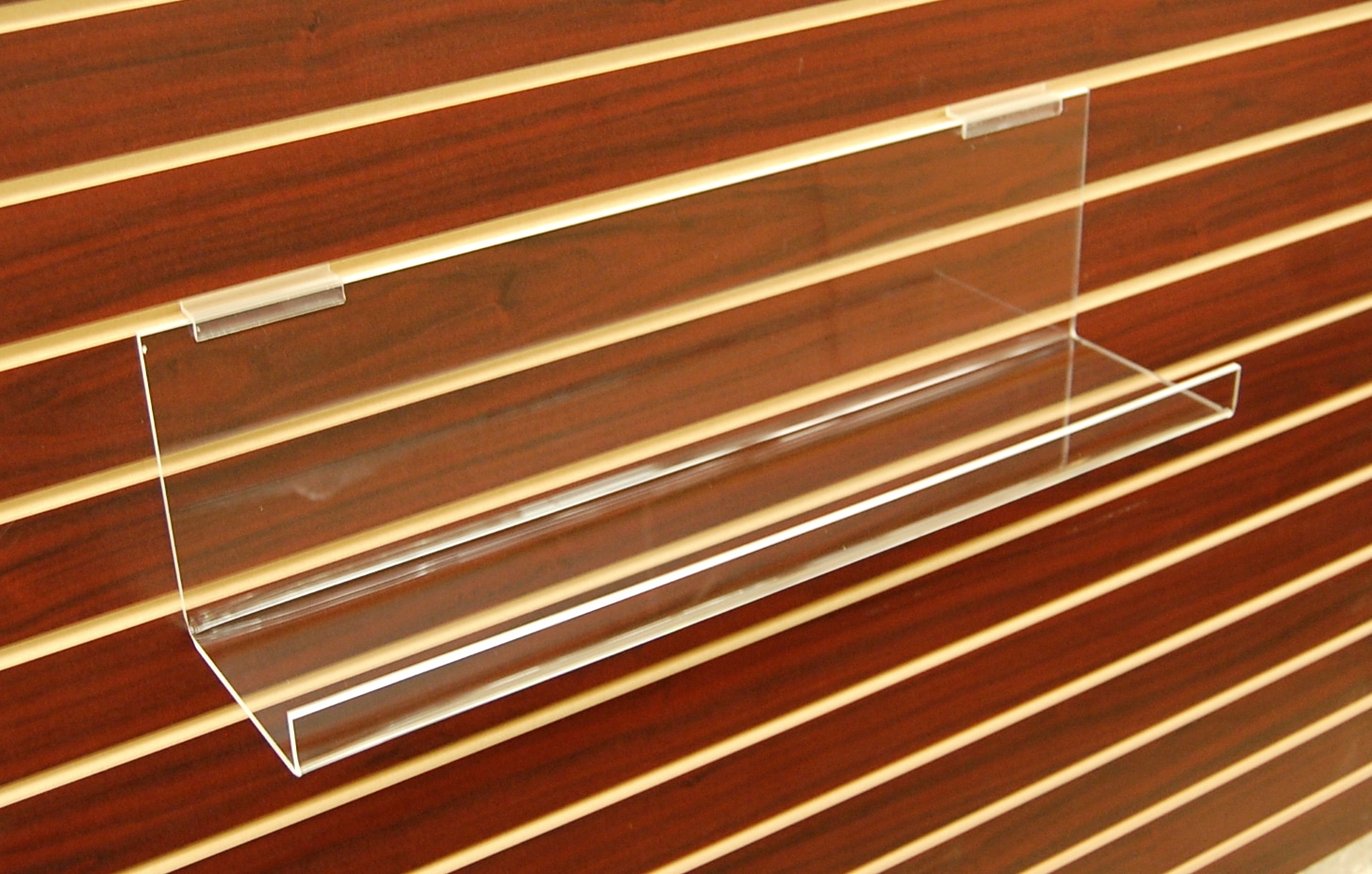 ACRYLIC SLATWALL J-RACK SHELF WITH LIP 23″ X 5″D X 6″H