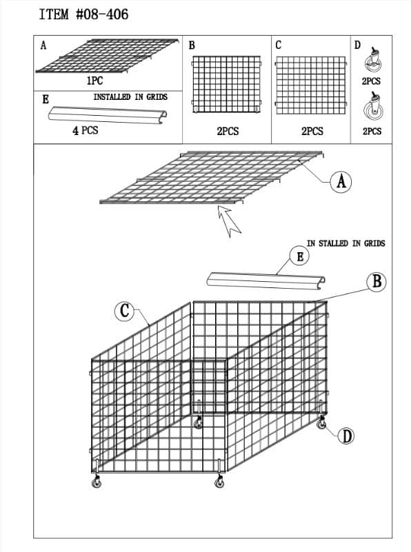 WIRE GRID DUMP BIN 36"X36" ADJUSTABLE WIRE SHELF CASTERS INCLUDED COLOR BLACK